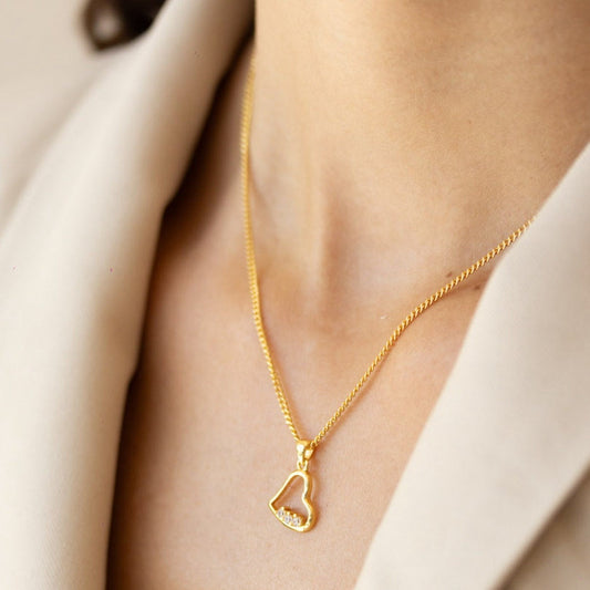 Collar corazón de baño de oro y zirconias
