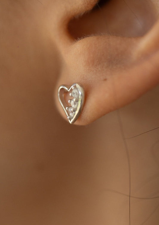 Aretes corazón de plata y zirconias