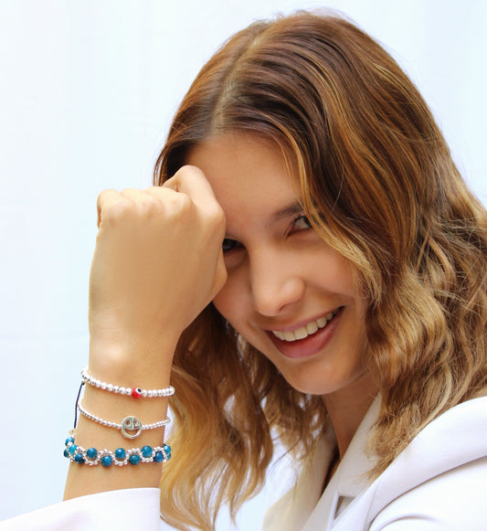 Pulsera mini ojo turco rojo de plata diamantada