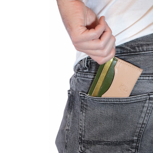 Tarjetero Soldi beige - verde - dorado, piel vegana