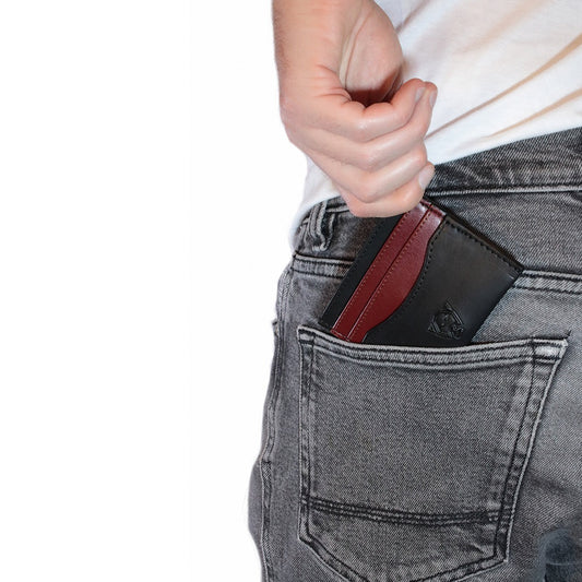 Tarjetero negro - rojo vino. Piel vegana