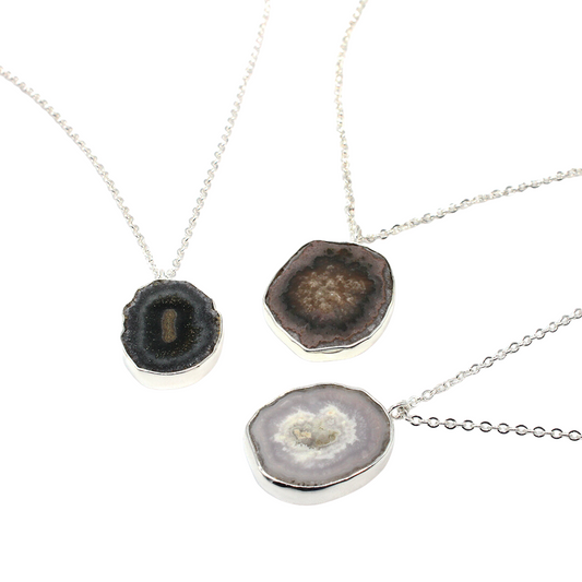 Collar de plata y geoda natural