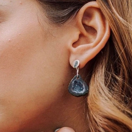 Aretes de plata y geoda natural